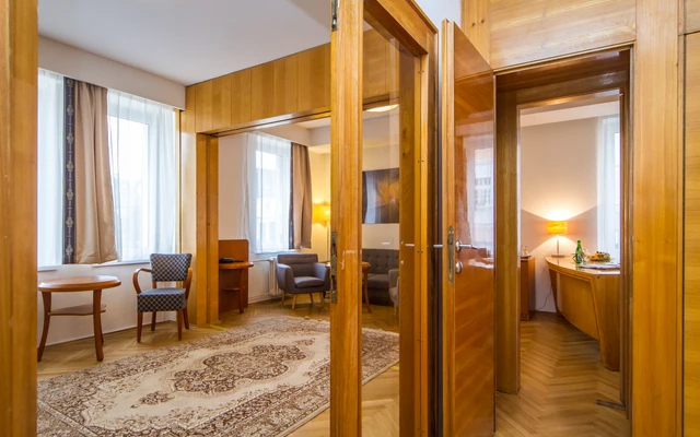 Toto prostorné apartmá má 1 obývací pokoj, 1 samostatnou ložnici a 1 koupelnu s vanou a toaletními potřebami zdarma. Apartmá má koberce, posezení se satelitní TV s plochou obrazovkou, příslušenství pro přípravu čaje a kávy a šatní skříň. V této ubytovací jednotce jsou k dispozici 2 postele. Fén a varná konvice jsou na vyžádání na recepci. Rozloha pokoje 60 m2. Možnost přistýlky.